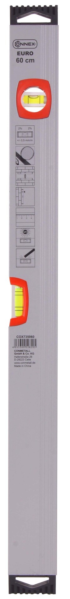 Die Wasserwaage hat ein Aluminium-Hohlprofil 50mm x 22mm, eine Profilstärke von 1,5mm und die Oberfläche ist Silber eloxiert. Die Messgenauigkeit bei Normallage beträgt +/- 0,5mm/m. Die Libelle hat einen Lupeneffekt und zusätzlich kann ein Gefälle von 2% direkt auf der Libelle abgelesen werden. Überkopfmessungen sind ebenfalls möglich.