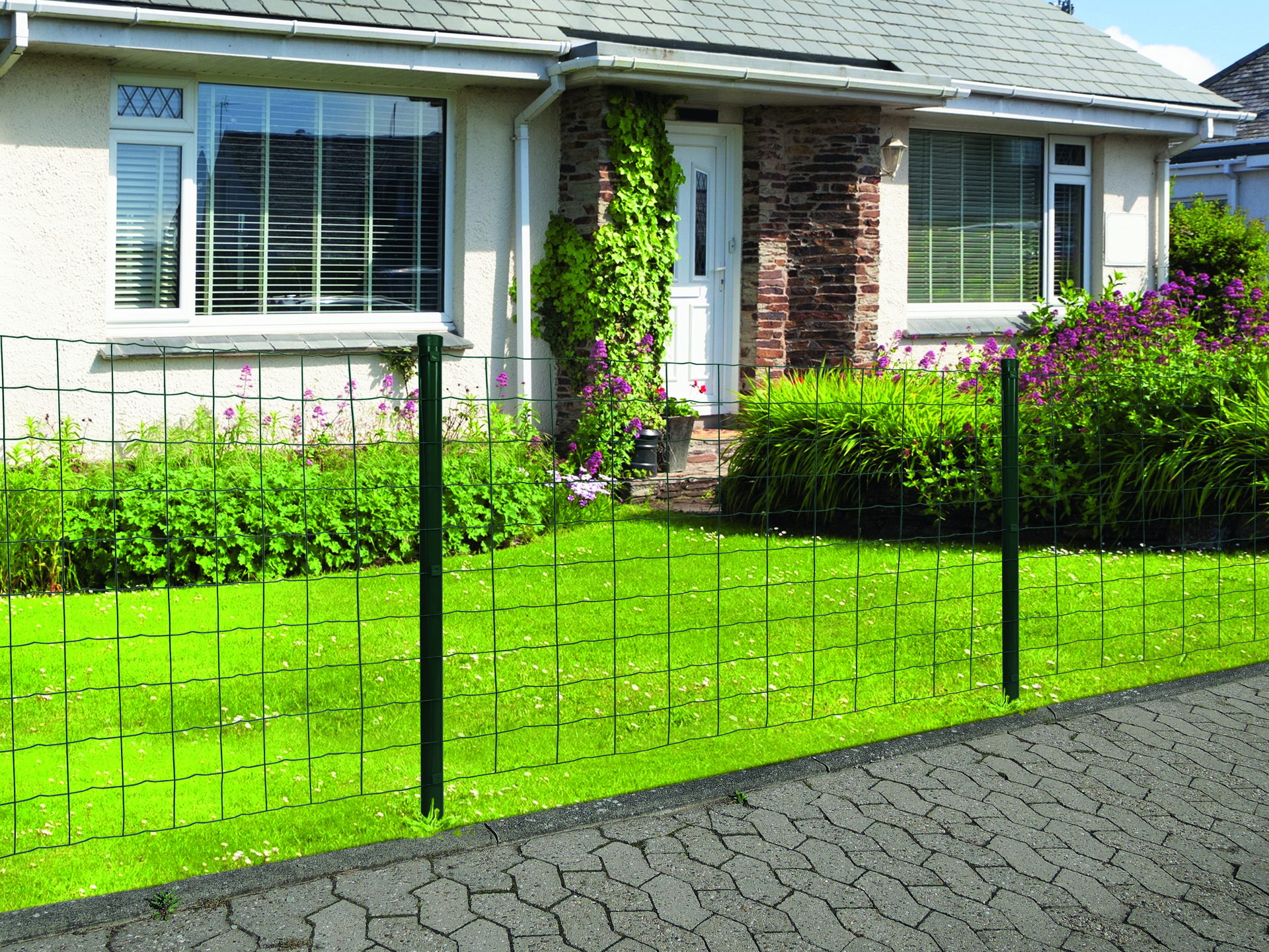 zur Abgrenzung von Grundstücksflächen und Trainingsplätzen, wetter- und UV-beständiges Material, mit gewellten Querdrähten, aus verzinktem und kunststoffummanteltem Stahl