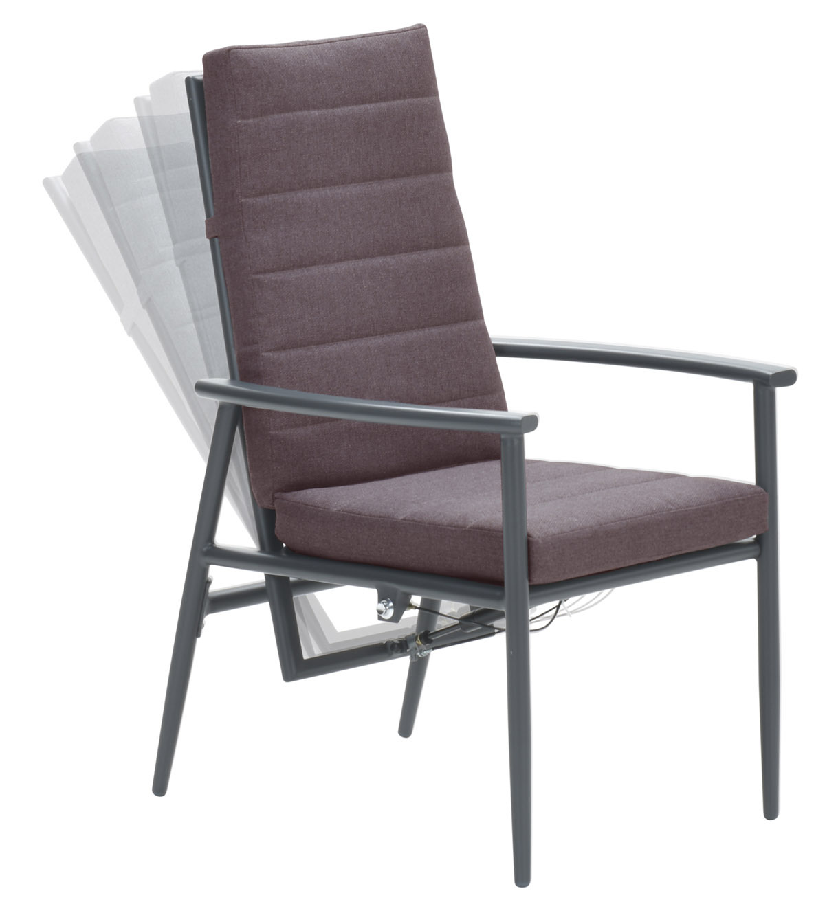 Der Stuhl ist komplett aus Aluminium gefertigt und mit einer schützenden Pulverbeschichtung versehen. Aluminium ist pflegeleicht und leicht. Der Stuhl kommt mit einem Sitz- und Rückenkissen und hat eine verstellbare Rückenlehne, die Sie von der Seite des Stuhls bedienen können, die Gasfeder sorgt zusätzlich dafür, dass Sie sich wunderbar entspannen können.