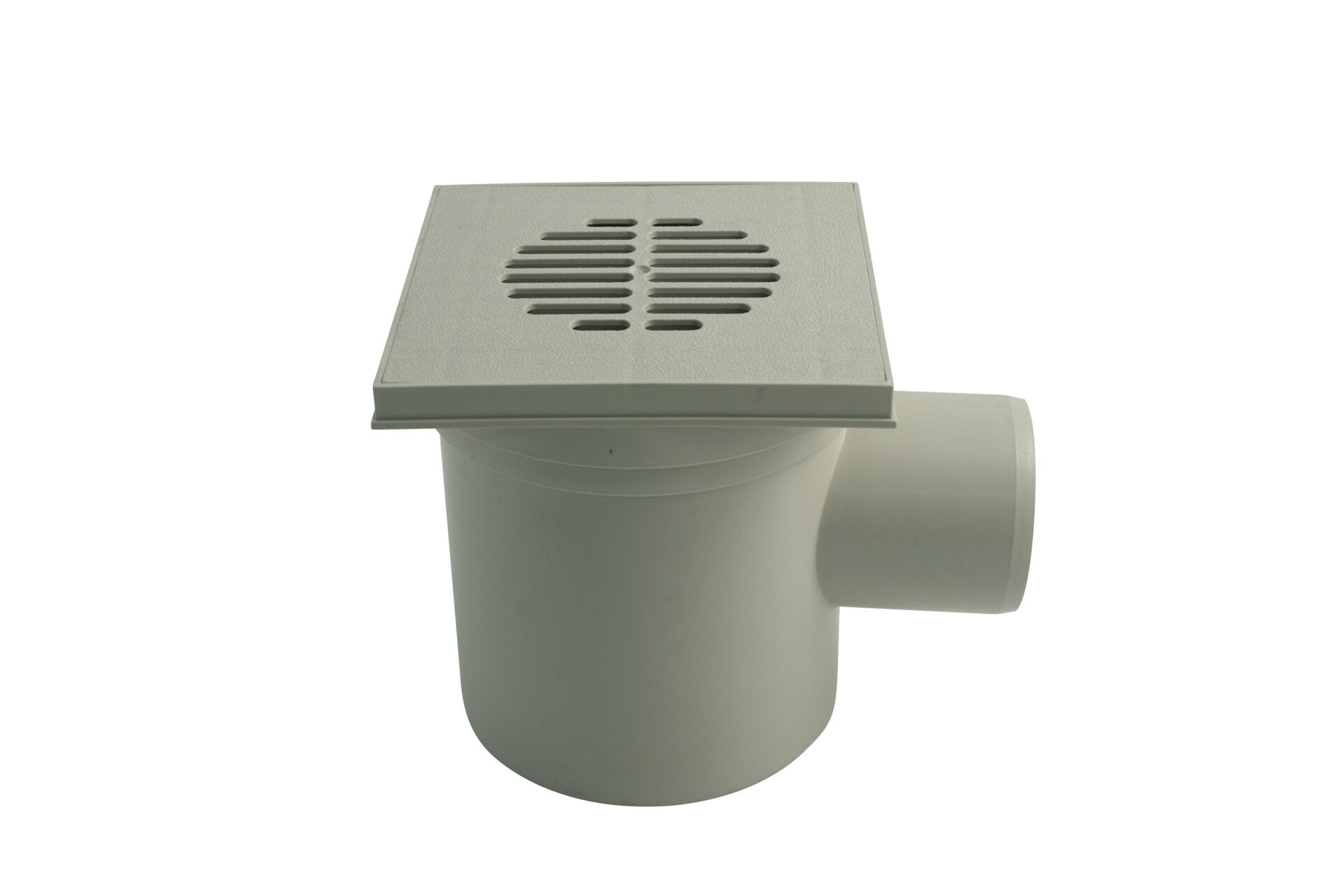 Kellerablauf, mit Kunststoffrost 150 x 150 mm, grau, schlagfest, temperaturbeständiger, säure- und laugenbeständiger Kunststoff aus PP (Polypropylen), mit drehbarem Oberteil, Geruchsverschluss und Schlammeimer. Edelstahlrost (EAN-Nr. 067834) als Sonderzubehör erhältlich.