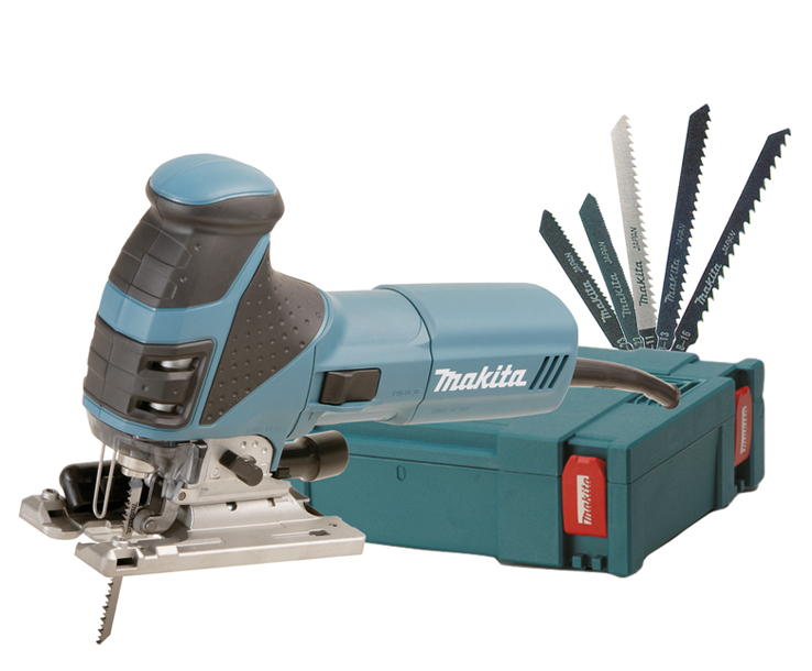Die kraftvolle Pendelhubstichsäge 4351FCTK arbeitet extrem leise und schnell. Sie verfügt über einen Handgriff mit eingelegtem Gummipolster. Dies sorgt für sicheren Halt und mehr Komfort beim Arbeiten. Außerdem kann die Hubzahl bei dieser Maschine elektronisch eingestellt werden. Im Lieferumfang enthalten ist außerdem ein Sägeblattset.