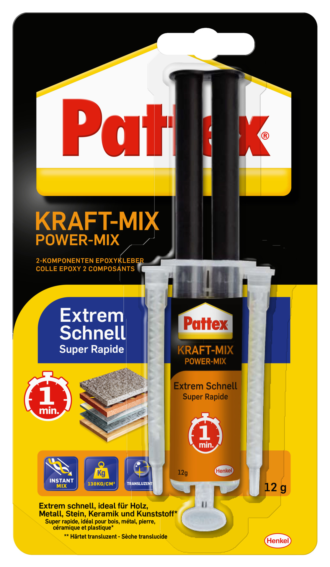 Pattex Kraft-Mix Extrem Schnell, gelblich transparent, 12 g